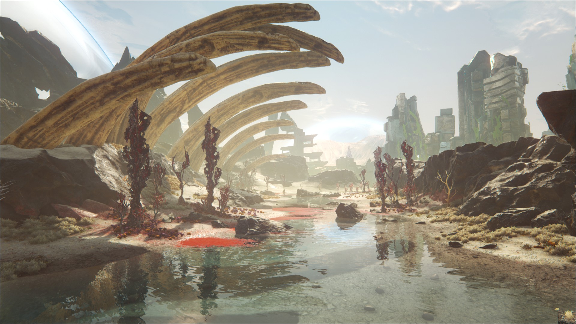 It's a partialy flooded valley in the center of which is standing the giant skeleton of The Ribcage.