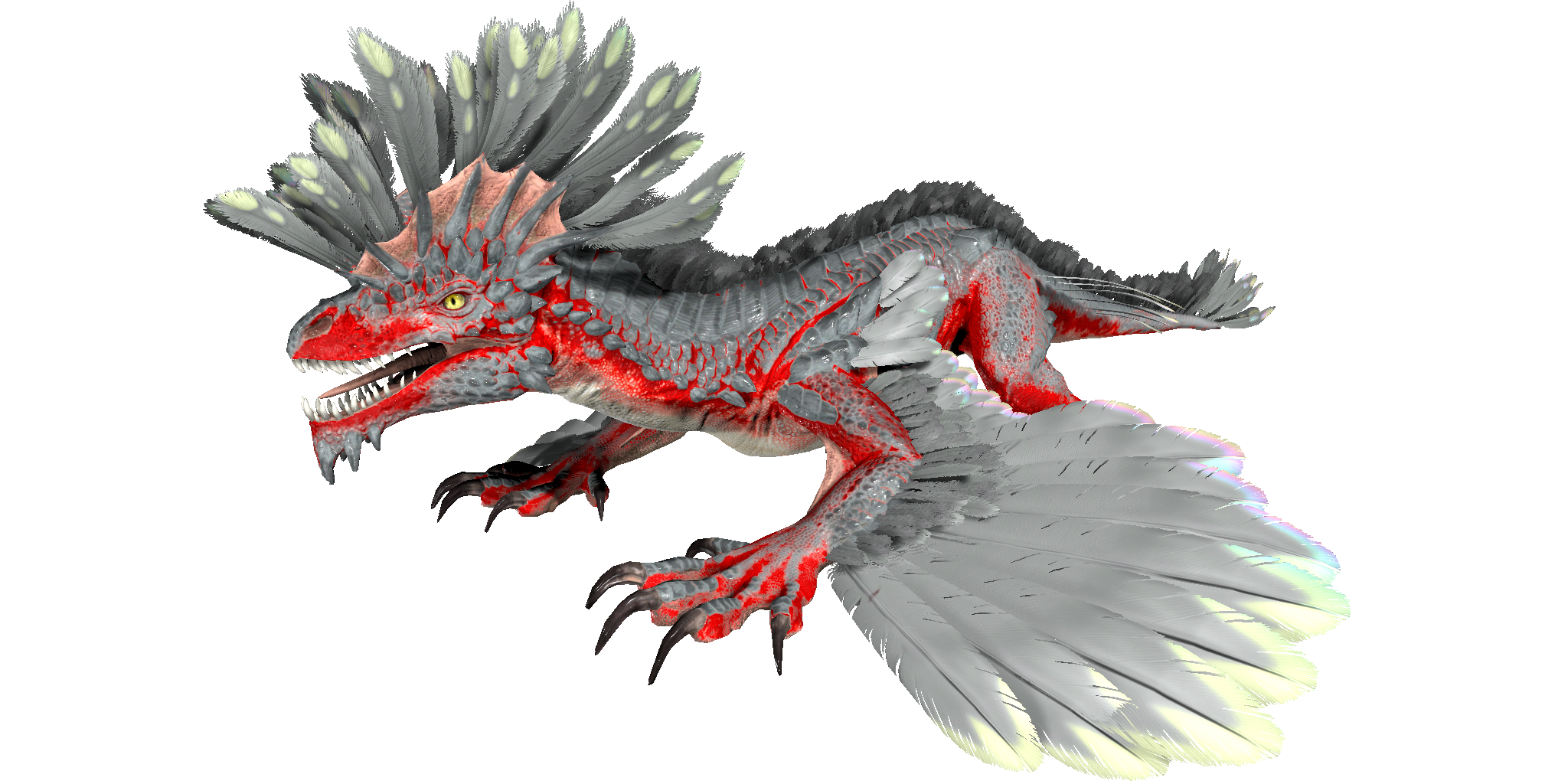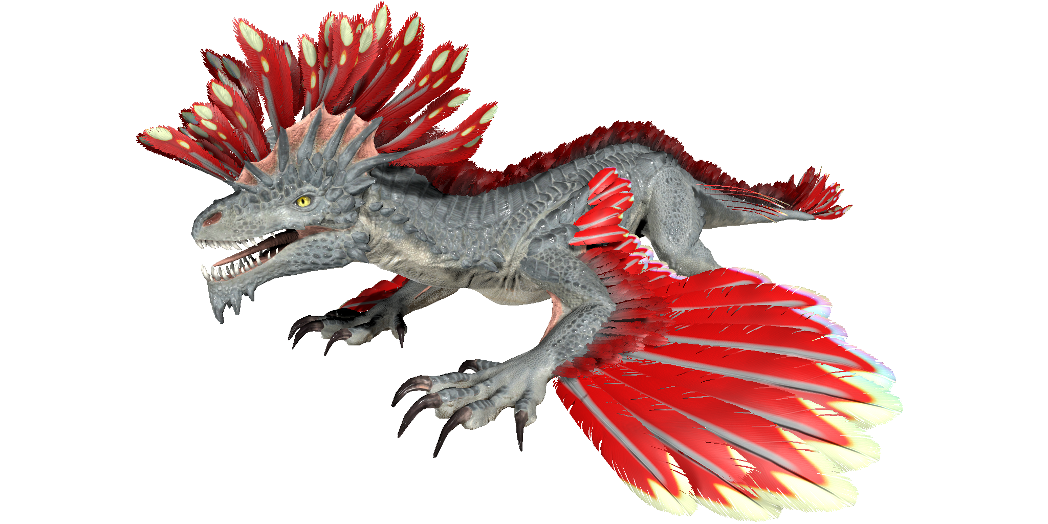 This section displays the Dragón de Roca's natural colors and regions. For demonstration, the regions below are colored red over an albino Dragón de Roca. The colored squares shown underneath each region's description are the colors that the Dragón de Roca will randomly spawn with to provide an overall range of its natural color scheme. Hover your cursor over a color to display its name and ID.