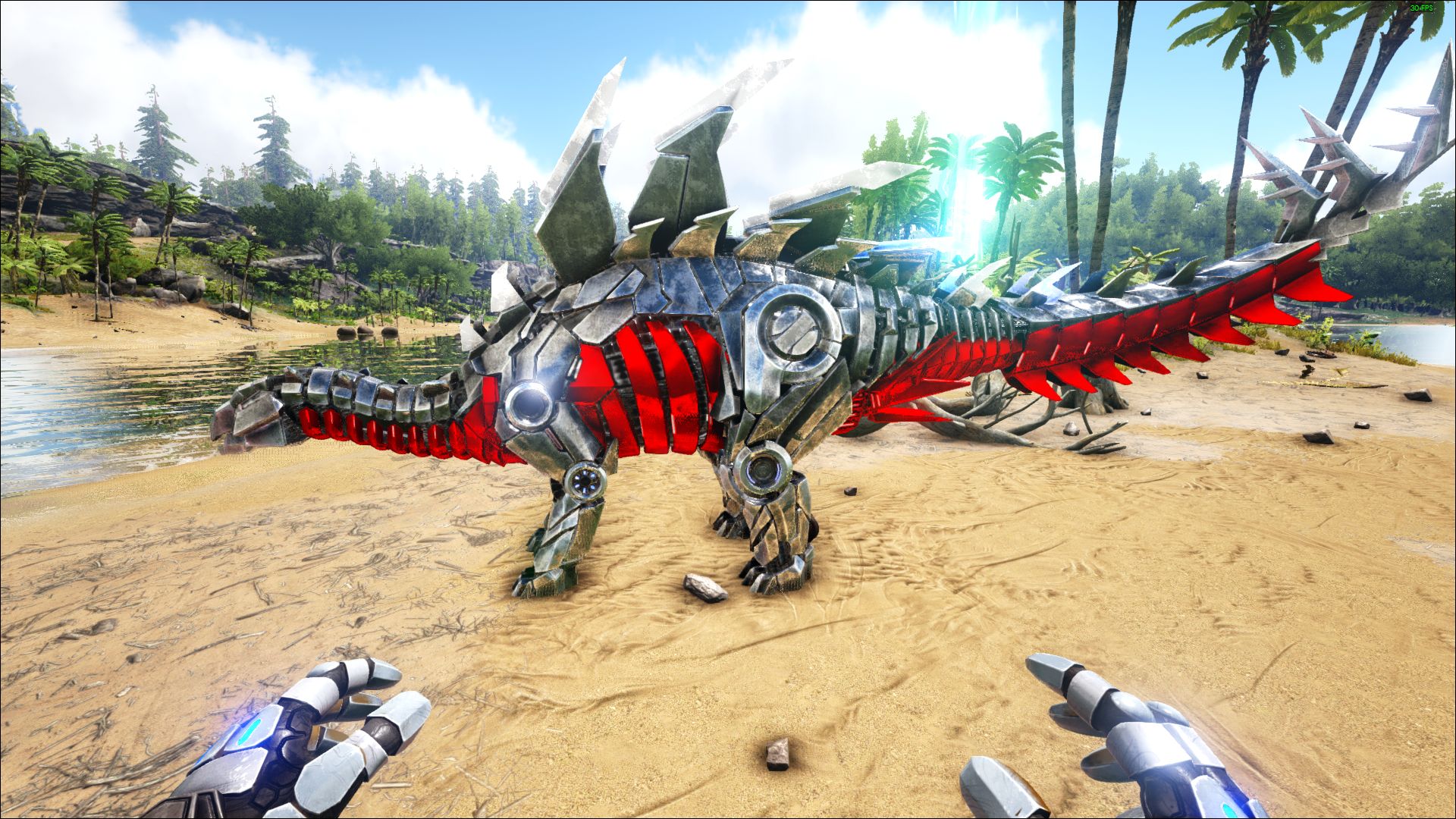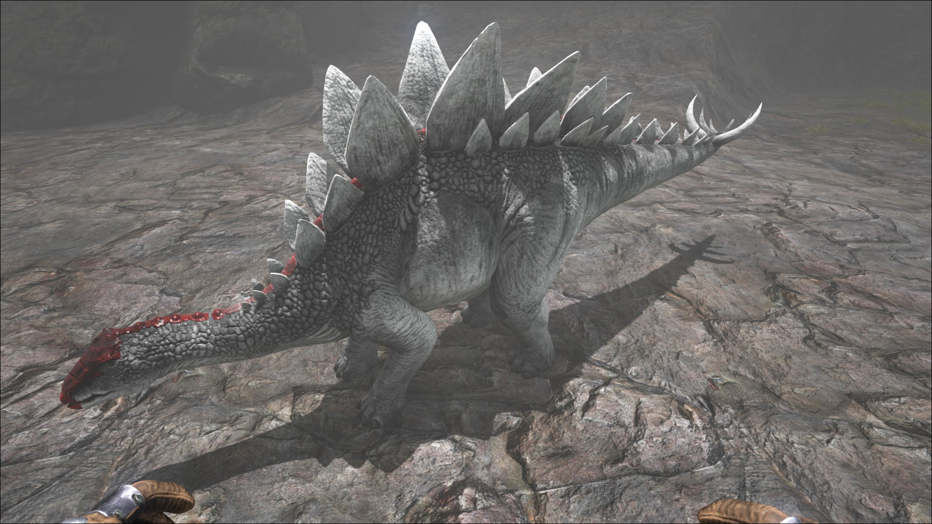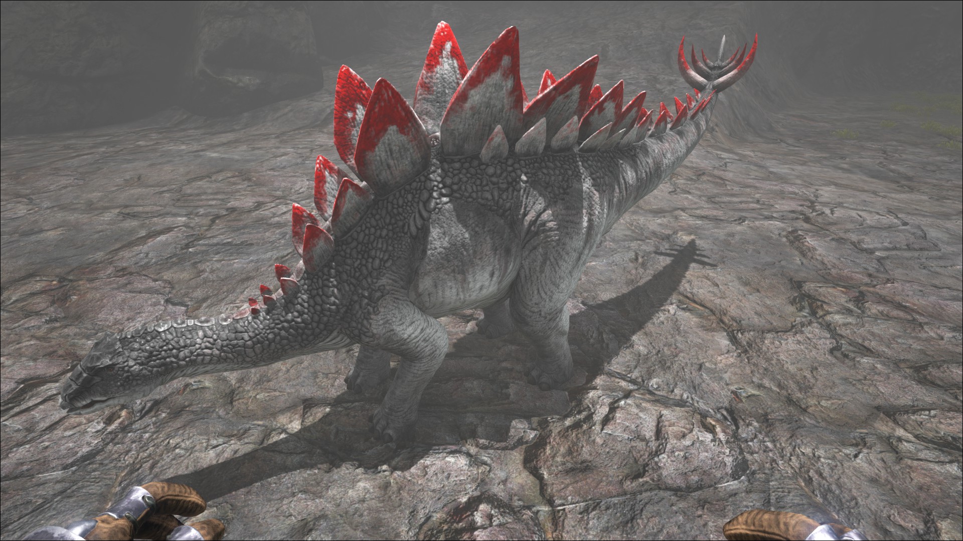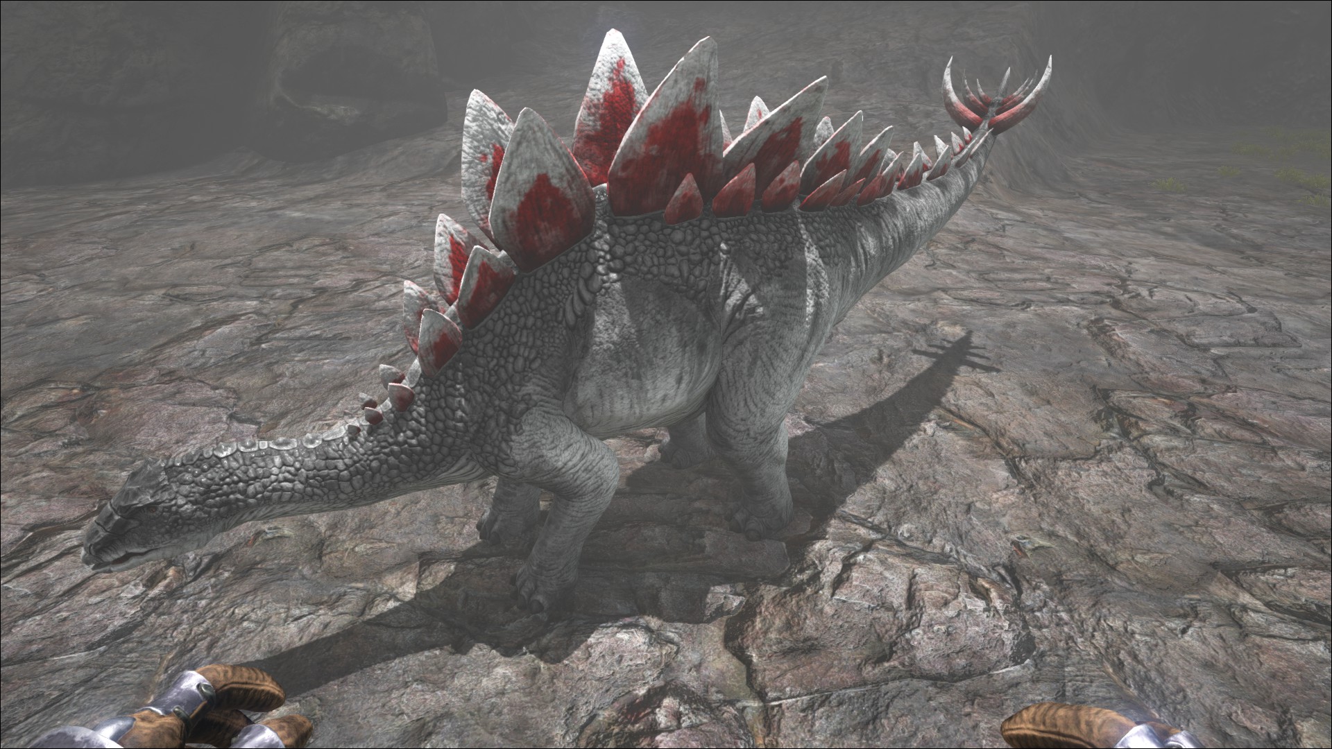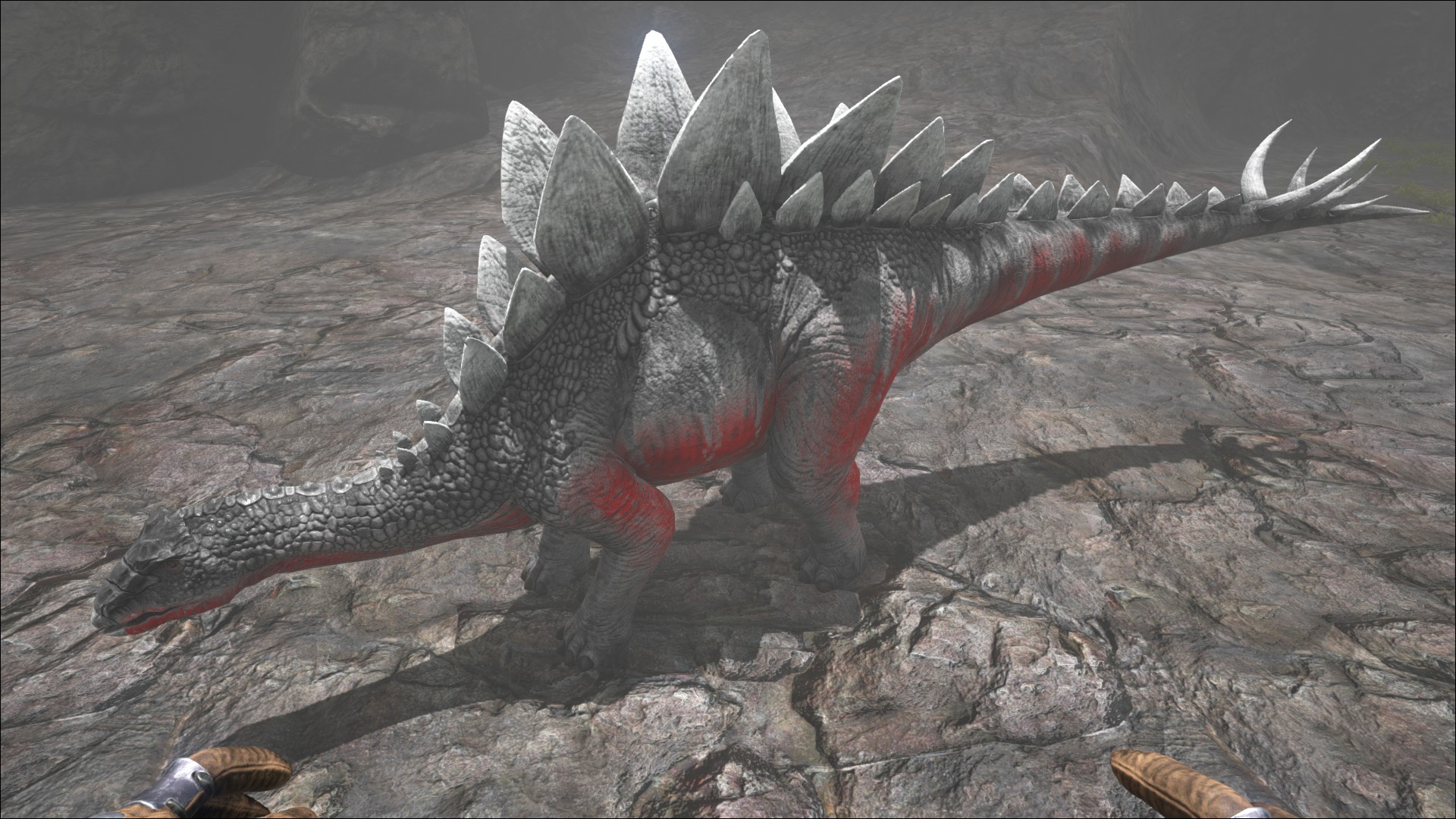 Stegosauruses additionally have respectable knock-back. Their damage is nothing to sneer at but their knock-back can quickly turn an easy fight into a foolish death. It should be noted non-mounted dinos are immune to fall damage and thus have little to fear other than getting mobbed by a herd. Play carefully and the Stego will fall easily. Also take care not to engage in fights you cannot win, either through lack of ammo or sheer number of enemies.