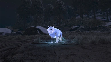 The Direwolf Ghost is a creature which was/is only available during ARK: Fear Evolved 4 . It is a spectral variant of the Direwolf and consists only of the ectoplasmic presence of this creature.