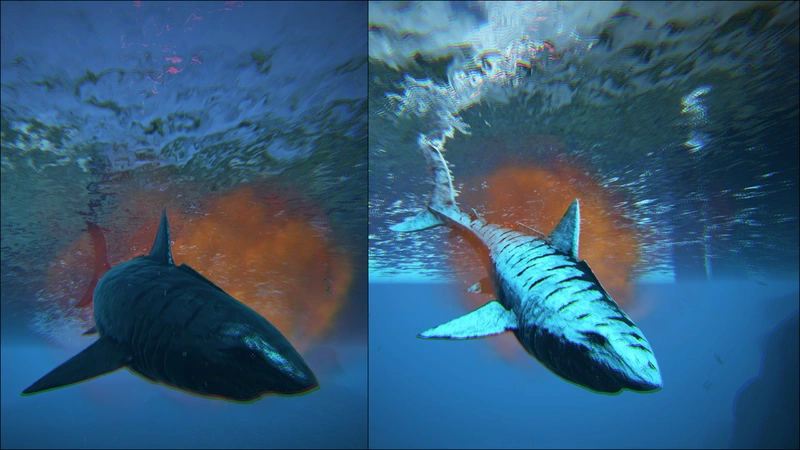 Besides the obvious threats of any Alpha Creature, the underwater environment can make the distinctive red/ orange Alpha glow difficult to make out until you are within the Megalodons aggro range; even with a