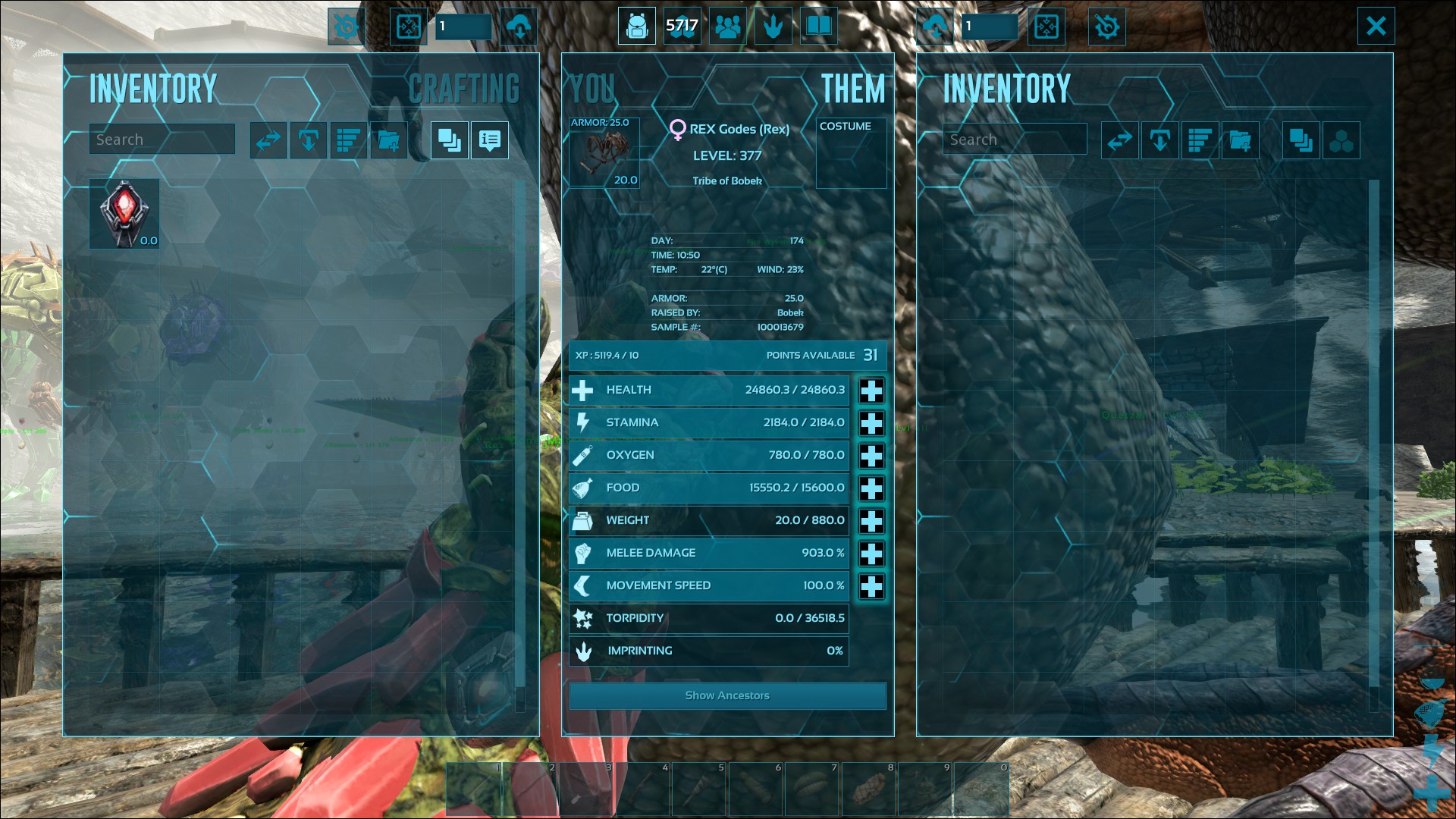 - Breeding a Rex that has no points in undesirable stats, e.g. Oxygen, Food, Weight, and Speed.
