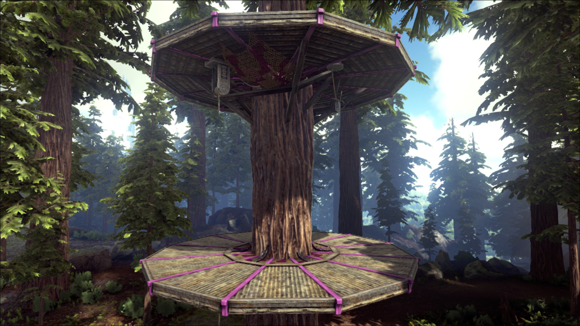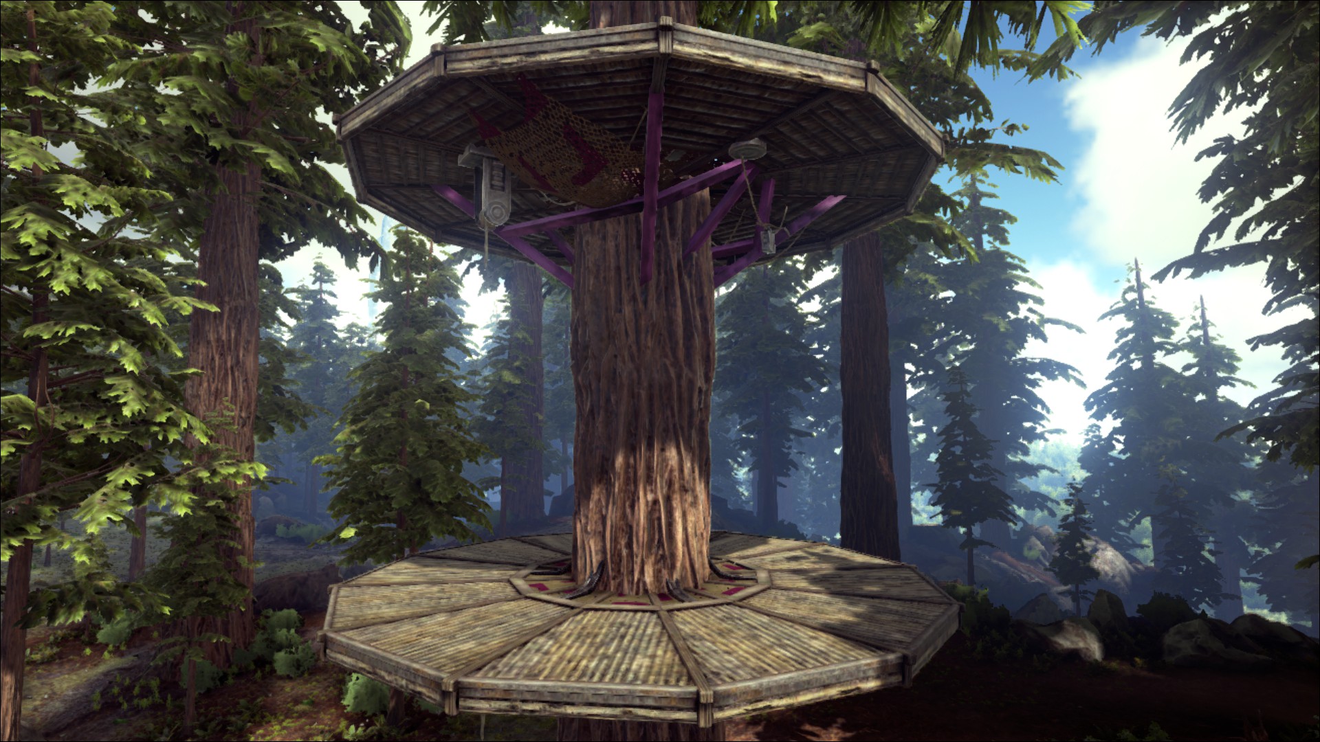 Esta plataforma se usa en el Bosque de Secuoyas, y solo se puede construir sobre las secuoyas que crecen en ese bioma. Las estructuras como la Archivo:Pared de piedra.png pared de piedra y la Archivo:Pared de madera.png pared de madera no se pueden colocar directamente sobre la plataforma. Para ello debes primero colocar un cimiento como el