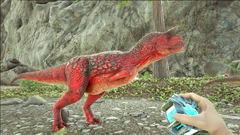 Soyez prudent lorsque vous affrontez un Carno. Il est puissant et se mettra en groupe contre vous. Souvent, la meilleure méthode sera d'utiliser un Scorpion et/ou des flèches tranquillisantes, mais cela peut être fait avec d'autres méthodes d'application de la torpeur, bien qu'à un risque plus élevé. Un moyen facile de garder un Carno à une portée suffisamment bonne pour le frapper en toute sécurité avec des tranquillisants consiste à construire un mur de trois de large et de trois de haut sur des fondations de clôture avec deux portes empilées les unes sur les autres sans portes à traverser. Ensuite, prenez l'agression du Carno et menez-le au mur. Ensuite, courez par le chemin de la porte pour le coincer et mettez le KO. Une autre façon est que s'il court déjà après un dino, de le suivre et de le mettre KO avec des flèches tranquillisantes pendant qu'il se régale du cadavre.