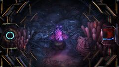 pour passer en mode Caméra, plusieurs appuis permettent de passer successivement en mode Contours, Nocture, Nocture avec contours; on zoome avec la molette. Ces modes permettent d'interagir avec les structures et créatures observées (voir Notes ci-dessous). Un réticule facilite le centrage de la vision, - Espace,