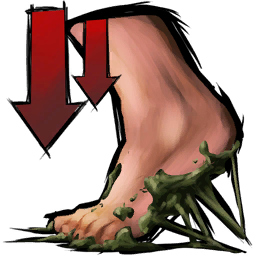 メッセージ: 体力低下 HUDテキスト: ジャンプ不可、ダッシュ不可、移動速度低下、気絶耐性低下 他の情報: この効果は、プレイヤーの | |