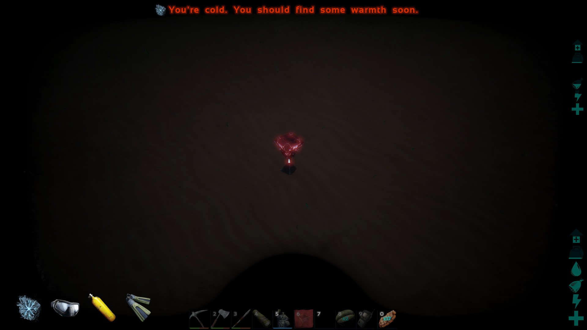 赤い色と周囲の光は、SCUBA MaskまたはGas Maskを着用しているときにのみ表示されます。それ以外の場合は、くすんだ水中の青い色であるため、見落とされがちです。