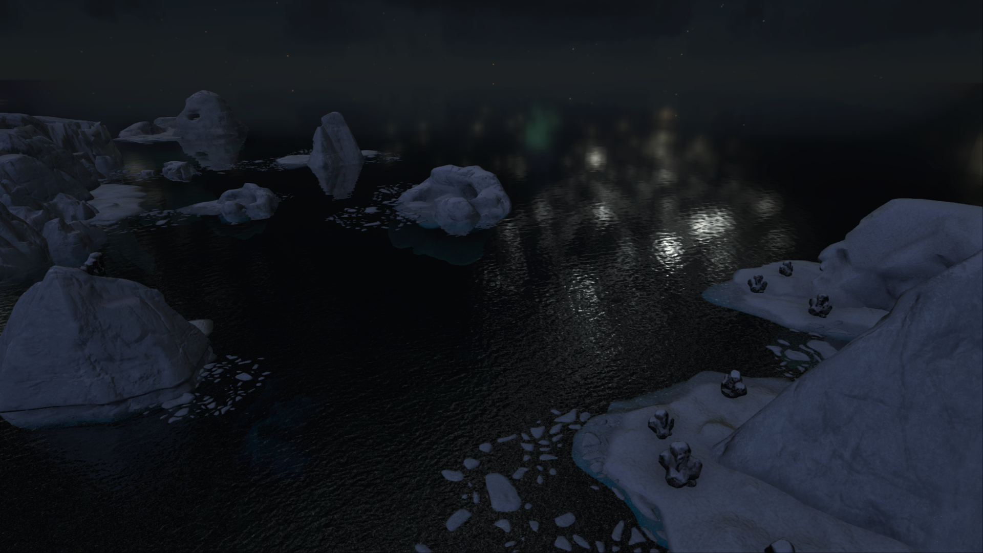 На The Island к северу/северо-западу можно найти Пик Белого Неба, Устье Зимы и другие заснеженные места. Побережье усеяно айсбергами и Кайруку, а также коварными скалами.