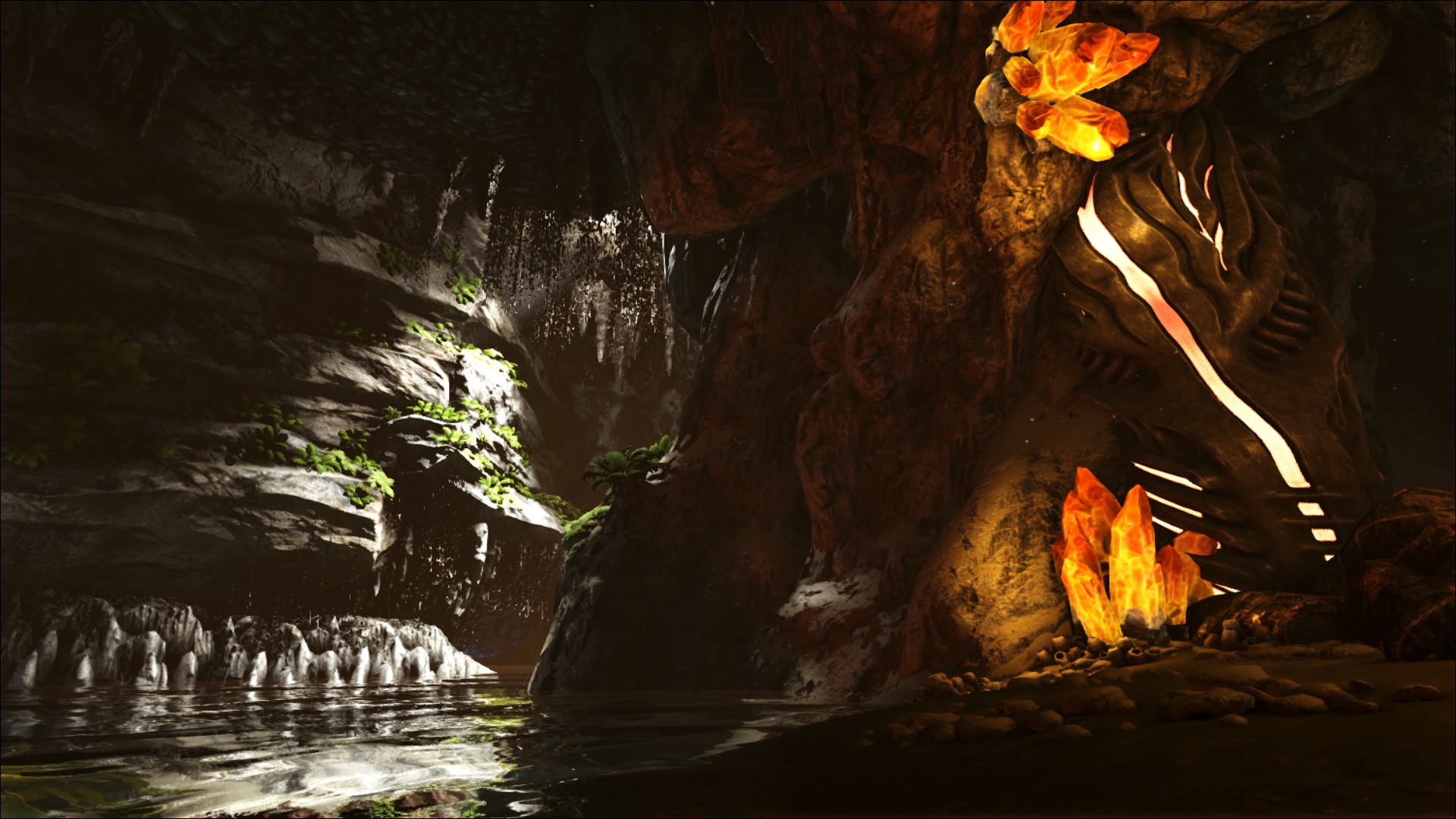 Найден под серединой подземного ARK, он кишит враждебными существами, особенно такими как: