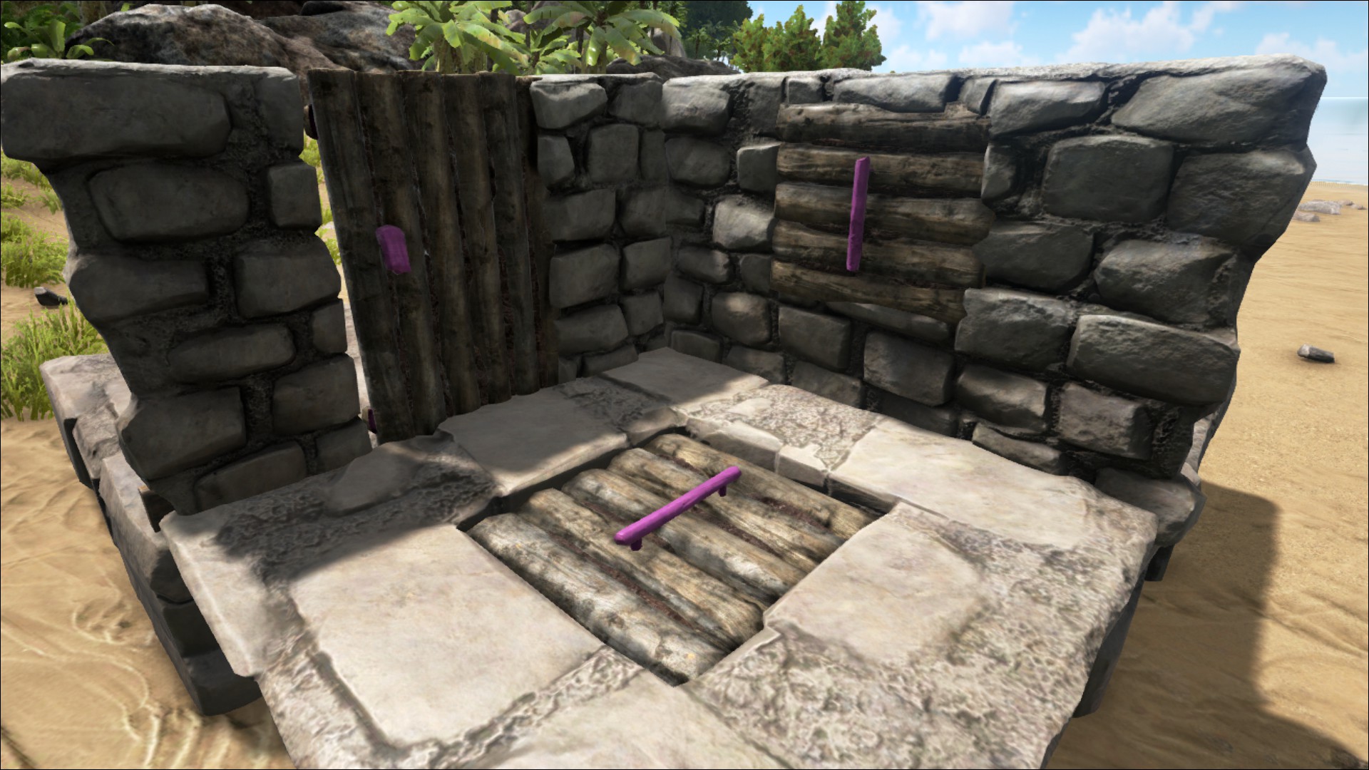 Двойном деревянном проёме. Вы можете блокировать или разблокировать двойную дверь, ограничив доступ в строения, однако, оставляя доступ вам и вашим соплеменникам.