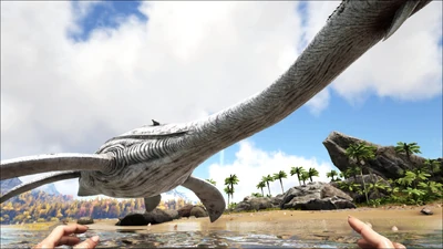 Эласмозавр (Э-лас-мо-завр), более известный как Плезиозавр (Пле-зи-о-завр), один из морских Рептилий в ARK: Survival Evolved.