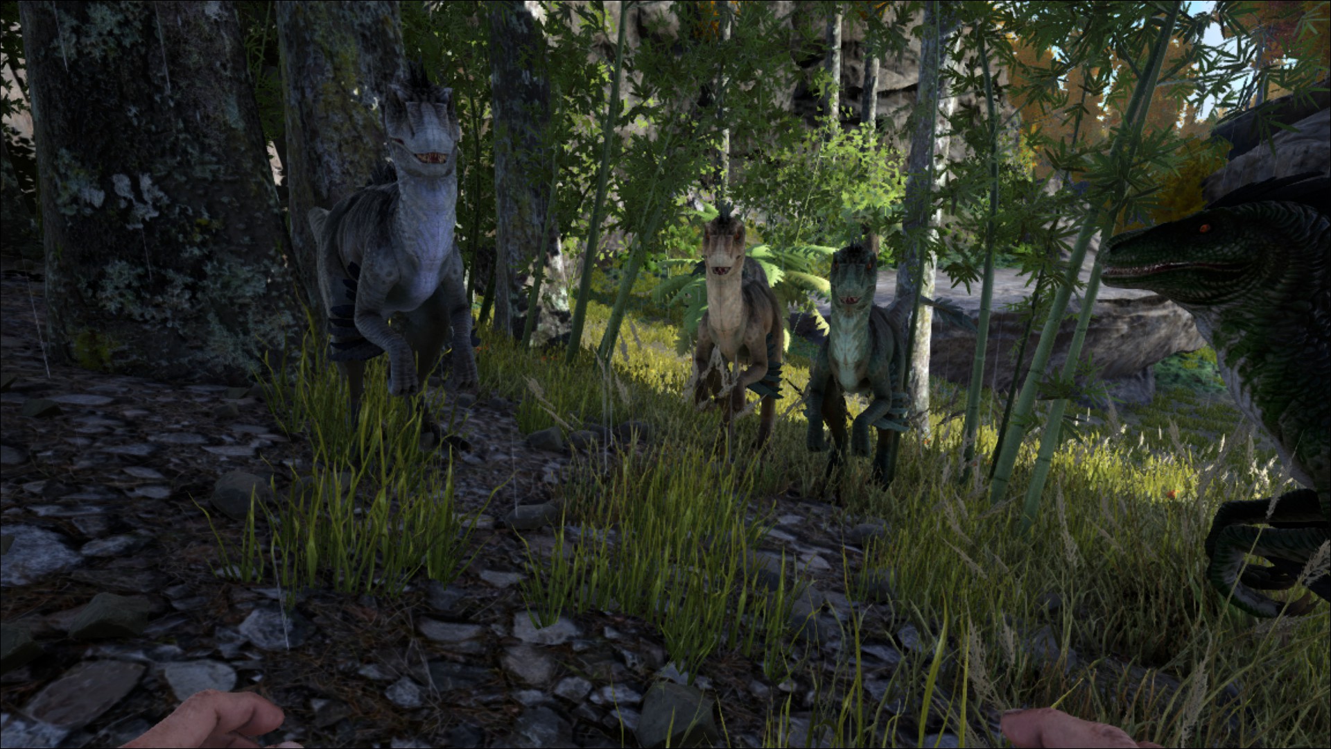 Рапторы могут быть опасны, если они атакуют вас сзади. Так же в стае у них увеличен урон и сопротивление к урону. Эти существа могут повалить Вас на землю. В этом состоянии Вы не сможете ничего сделать. Однако держать на земле они будут лишь 5-10 секунд.