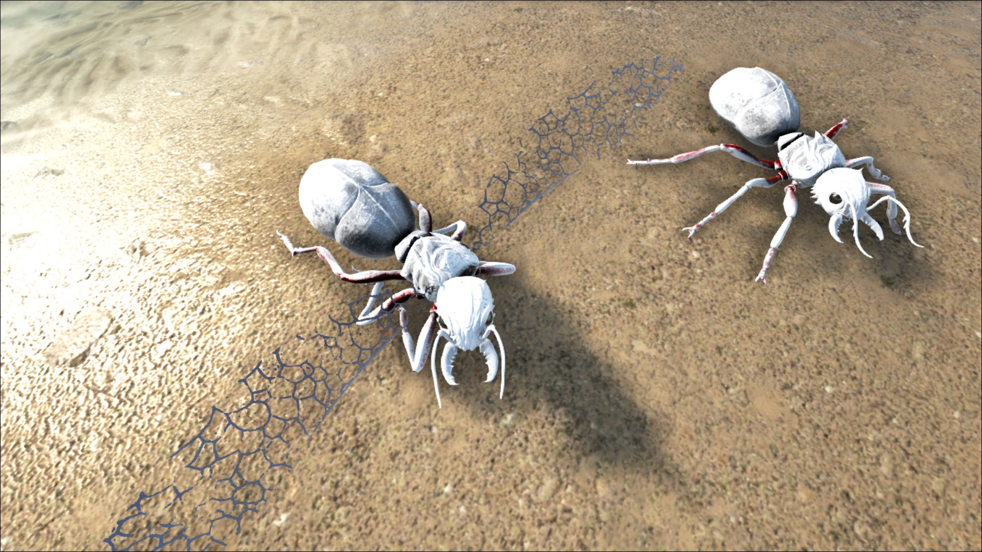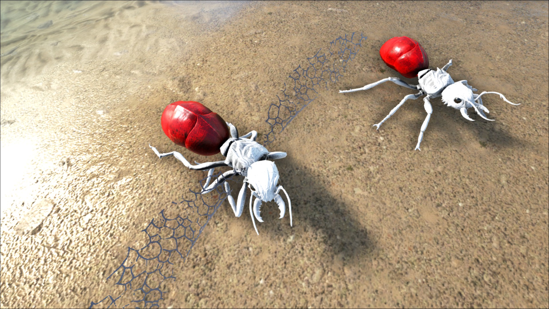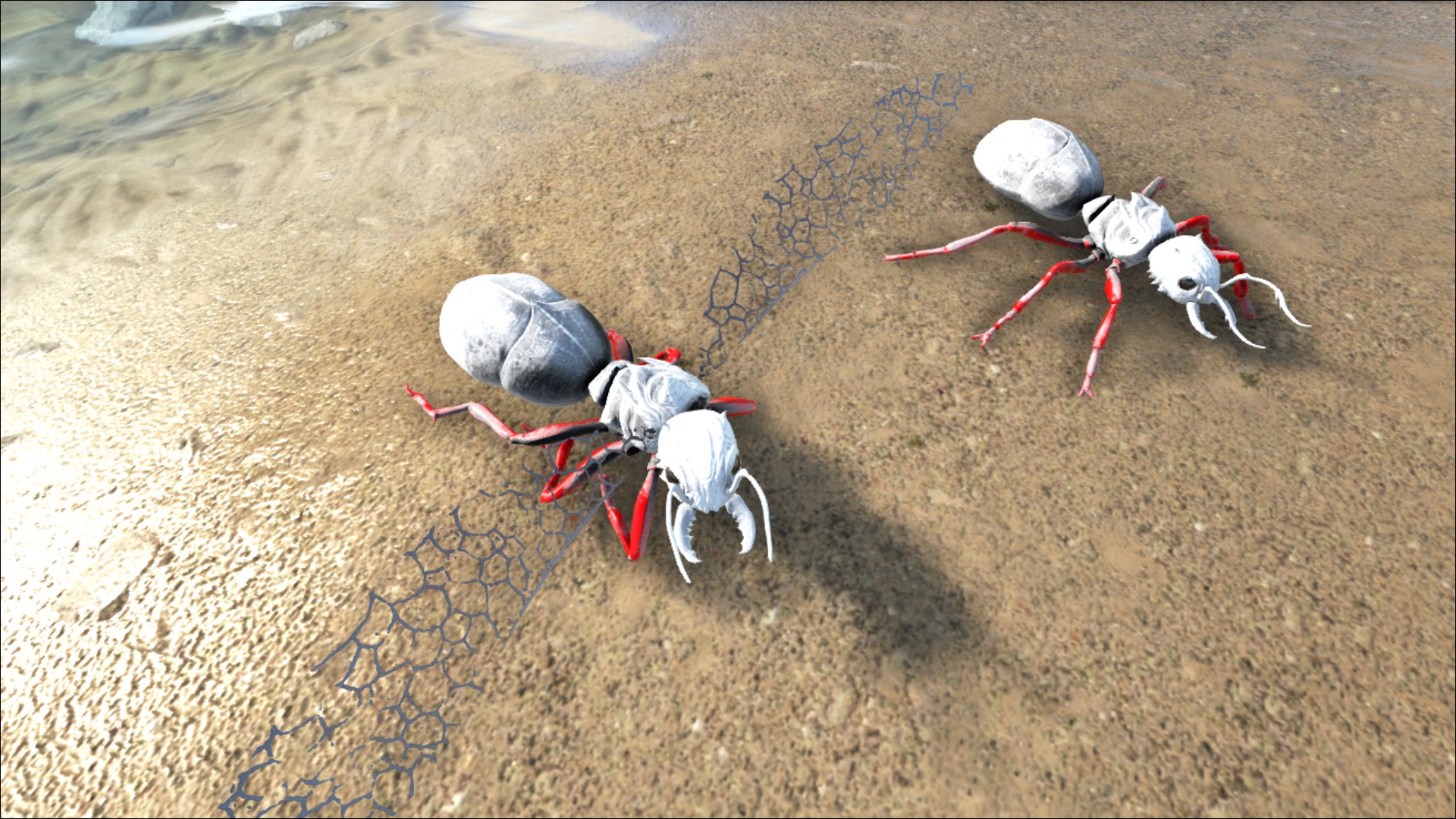Titanomyrma come in two variants: Soldiers and drones. The former bear a resemblance to wasps or hornets, complete with aggressive buzzing. The latter resemble more typical ants. They are quite large, even for their genus, but still vastly dwarfed by the rest of the ARK's wildlife.