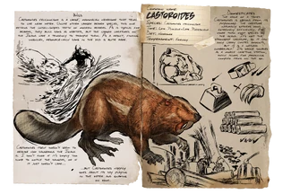 The Castoroides is a giant species of beaver found commonly in the rivers and ponds of the island's interior. It also appears at the Hidden Lake. It has waterproof fur and a flat tail for swimming. With their powerful jaws and sharp incisors they can gnaw through many of the trees found throughout the island, using the resulting wood and other raw materials to construct their dams.