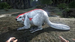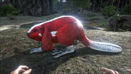 This section displays the Castoroides's natural colors and regions. For demonstration, the regions below are colored red over an albino Castoroides. The colored squares shown underneath each region's description are the colors that the Castoroides will randomly spawn with to provide an overall range of its natural color scheme. Hover your cursor over a color to display its name and ID.