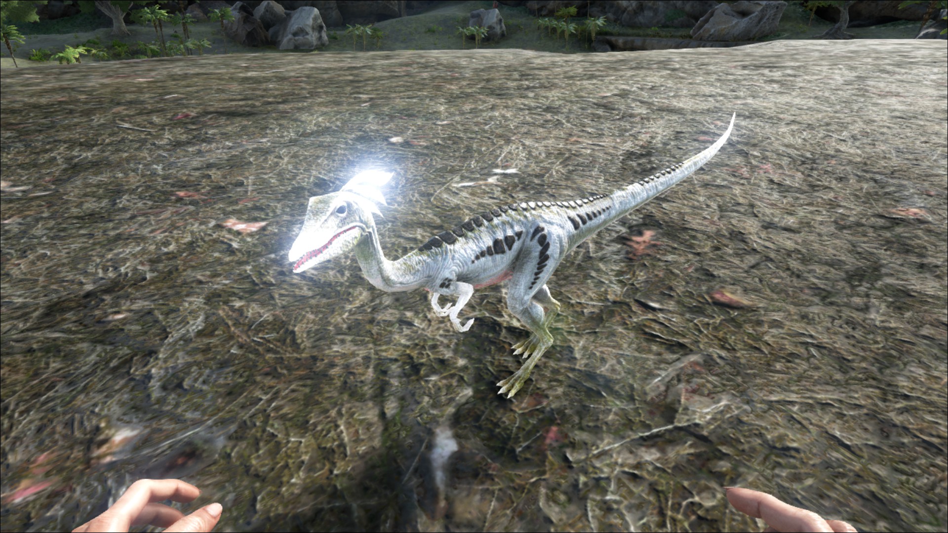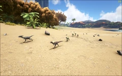 Curious of humans, any Compy will be drawn to one simply by seeing it. Alone, a Compsognathus is not a threat, will not attack, and simply wishes to observe humans, however, when mate boosted and in larger packs, these little terrors soon become aggressive and will attack anything, especially humans. If hungry enough, they are also prone to eat their fallen pack mates after a fight. The Compy, once tamed, is extremely loyal and loving to its new master, and can travel perched on their shoulder. However, the Compy is smarter (or perhaps simply more picky) than most of the other animals on the island, so to win one's affection during the taming process, Prime Meat is essential.