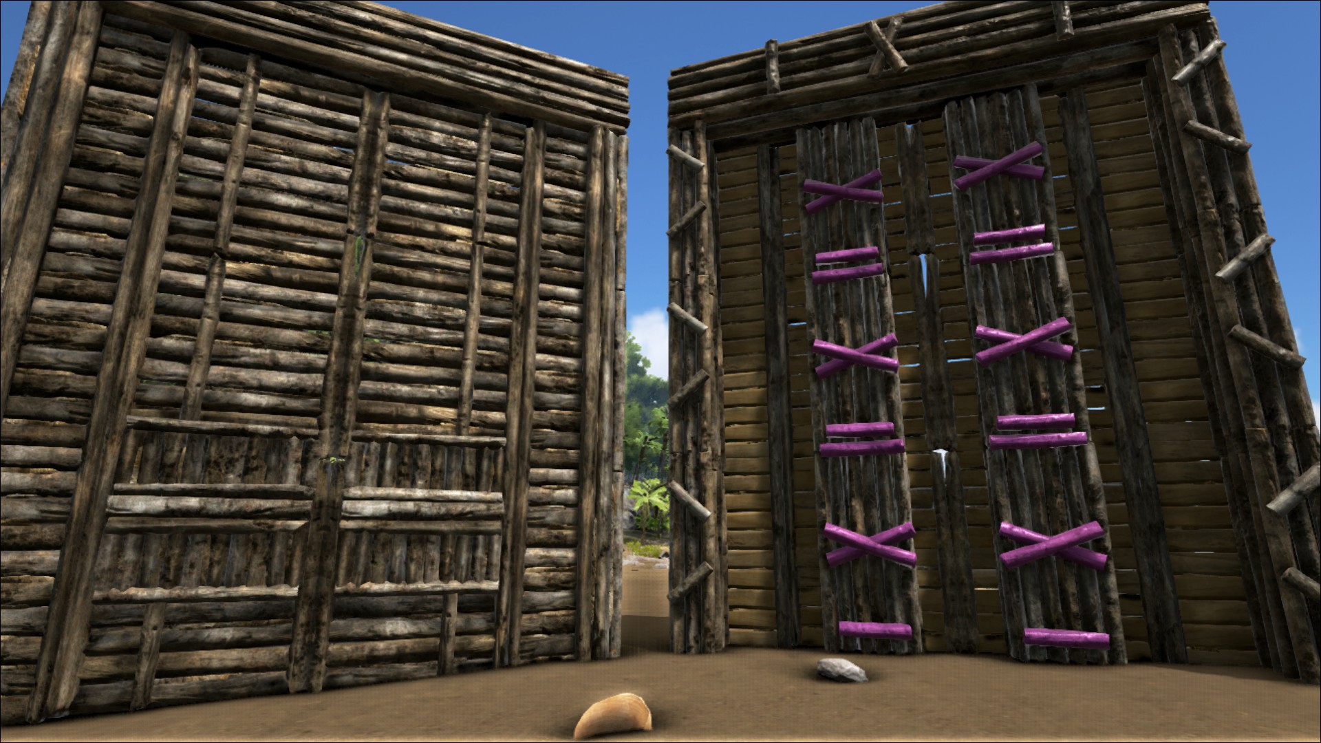 The Dinosaur Gate is the most basic gate available. It offers protection to a base and is used to get tamed dinosaurs in and out of a base.
