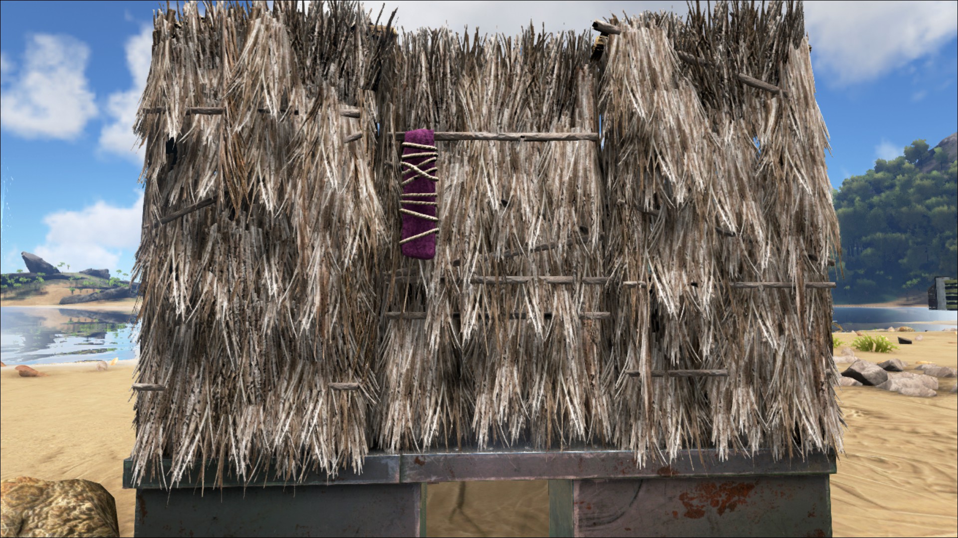 The Thatch Door is the most basic door available. A door functions as a way to lock the entrance to a structure and seal the elements out. It does not provide much protection against attacks, as it can be broken easily. It is recommended to be upgraded to a Wooden Door and should only be used for a short-term base.